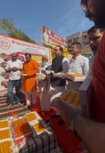 हरिद्वार : श्री राम नाम विश्व बैंक समिति के तत्वाधान में श्री हनुमान जन्मोत्सव बड़ी धूमधाम से मनाया गया। श्री हनुमान जन्मोत्सव पर 51 किलो लड्डुओं का भोग लगाकर प्रसाद वितरित किया गया।