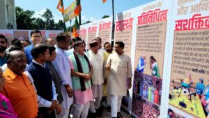 देहरादून/श्रीनगर गढ़वाल। सेवा पखवाड़ा कार्यक्रम के तहत भाजपा महानगर कार्यालय में प्रधानमंत्री नरेंद्र मोदी के जीवन चरित्र पर प्रदर्शनी आयोजित हुई। मुख्य अतिथि भाजपा प्रदेश अध्यक्ष एवं राज्यसभा सांसद महेंद्र भट्ट, सांसद नरेश बंसल और महामंत्री संगठन अजय कुमार ने संयुक्त रूप से प्रदर्शनी का उद्घाटन किया।