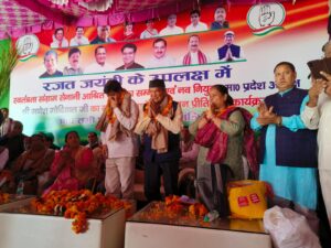 हरिद्वार। बहादुरपुर जट्ट स्थित ज्ञान पैलेस में रजत जयंती सम्मान समारोह में स्वतंत्रता संग्राम सेनानी आश्रितों का सम्मान किया गया। कार्यक्रम में कांग्रेस प्रदेश अध्यक्ष गणेश गोदियाल का भव्य स्वागत हुआ। समारोह में पूर्व मुख्यमंत्री हरीश रावत, विधायक अनुपमा रावत व अन्य वरिष्ठ नेता शामिल रहे। गणेश गोदियाल ने कहा कि कांग्रेस सभी धर्मों और समुदायों का सम्मान करने वाली पार्टी है। हरीश रावत ने भाजपा सरकार पर जनता से वादाखिलाफी का आरोप लगाते हुए कांग्रेस सरकार लाने की अपील की। विधायक अनुपमा रावत ने कहा कि उन्होंने अपने क्षेत्र में अभूतपूर्व विकास कार्य कराए हैं। कार्यक्रम में भारी भीड़ उमड़ी और कार्यकर्ताओं ने कांग्रेस नेतृत्व के प्रति विश्वास जताया।