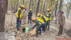 रूद्रप्रयाग। फॉरेस्ट फायर सीजन के मद्देनजर रुद्रप्रयाग जनपद में वन अग्नि सुरक्षा और त्वरित नियंत्रण व्यवस्था का मॉक अभ्यास जिलाधिकारी विशाल मिश्रा के निर्देशन में आयोजित किया गया। अभ्यास में वन विभाग, एसडीआरएफ, डीडीआरएफ, अग्निशमन विभाग और 108 एम्बुलेंस सेवा ने भाग लिया। धनपुर 11 क्षेत्र में आग फैलने की काल्पनिक स्थिति में सभी टीमों ने संयुक्त रूप से राहत और बचाव कार्य किया। घायल कर्मी को स्ट्रेचर से जिला चिकित्सालय भेजा गया। 20 मिनट में आग पर नियंत्रण पाया गया।