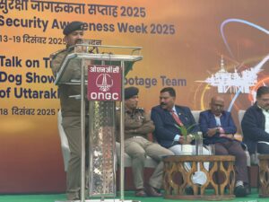 देहरादून। वरिष्ठ पुलिस अधीक्षक देहरादून के निर्देशन में पुलिस अधीक्षक यातायात के नेतृत्व में आज ओएनजीसी भवन परिसर में सड़क सुरक्षा सप्ताह 2025 के तहत जागरूकता शिविर आयोजित किया गया। निरीक्षक यातायात जितेन्द्र जोशी ने अधिकारियों और कर्मचारियों को सीट बेल्ट व हेलमेट के महत्व, ओवरस्पीडिंग के खतरे, वाहन चलाते समय मोबाइल न उपयोग करने और यातायात संकेतों की जानकारी दी। शिविर में गुड सेमेरिटन कानून की जानकारी दी गई, जिसमें सड़क दुर्घटना के घायलों की मदद करने वाले व्यक्ति को कानूनी सुरक्षा प्रदान की जाती है। उपस्थित अधिकारी/कर्मचारी दून पुलिस की पहल की सराहना करते हुए स्वयं और अपने समाज को यातायात नियमों के पालन हेतु प्रेरित करने का संकल्प लिया।