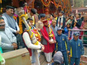 उत्तरकाशी। भाईदूज के पावन पर्व पर गुरुवार को उत्तराखंड के प्रसिद्ध यमुनोत्री धाम के कपाट पारंपरिक रीति-रिवाजों, वैदिक मंत्रोच्चार और पूजा-अर्चना के साथ शीतकालीन अवकाश हेतु बंद कर दिए गए। दोपहर 12 बजकर 30 मिनट पर कपाट बंद होने की धार्मिक प्रक्रिया मंदिर परिसर में संपन्न हुई। कपाट बंद होने के बाद मां यमुना की पालकी डोली ढोल-दमाऊ की स्वर लहरियों और जयकारों के बीच पूजा-अर्चना के साथ शीतकालीन प्रवास के लिए खरसाली (खुशीमठ) गांव के लिए रवाना हुई। डोली यात्रा में सैकड़ों श्रद्धालु शामिल हुए।