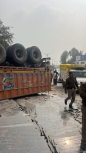 मोहब्बेवाला के पास मार्बल से भरा ट्रक पलटा, यातायात प्रभावित